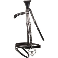 The Collegiate ComFiTec Vogue Anatomical Bridle is made from high quality Europeon leather and features an anatomical headpiece with super soft padding throughout and is wider shaped between the horses ears to distribute pressure evenly and comfortably. The curved nose piece is shaped to bypasses all the sensitive main facial nerves and offers ultimate comfort and protection.