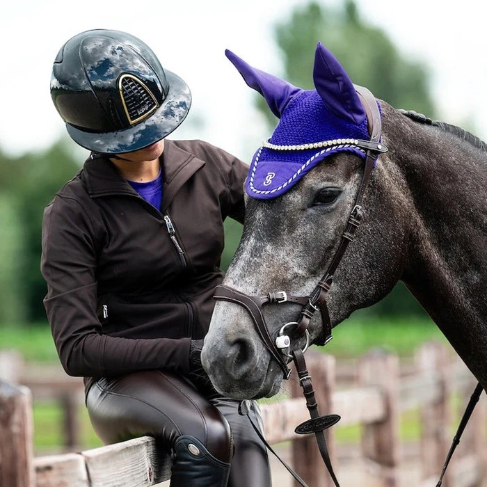 This fly hat with its elastic ears has been hand-knitted in a fashion that provides a secure, custom fit. To complete the look, it is decorated with an elegant array of details from its accompanying collection, with the recognizable PS logo emblem placed on the front.
