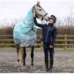 2022 Hy Equestrian StormX Original This Esme 200 Turnout Rug W/ Detachable Neck 35125 – Mint / Grey